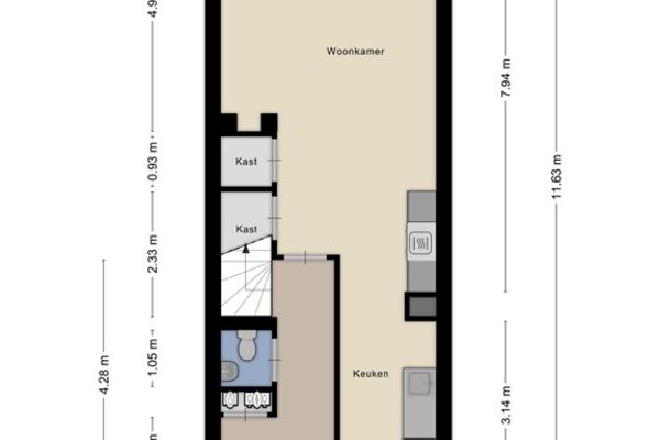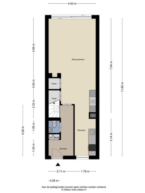 Entree met toilet en douche, trapopgang en praktische bergkast. Aan de voorzijde bevindt zich de moderne keuken. De uitgebouwde woonkamer aan de achterzijde is ruim opgezet en dankzij de schuifpui heerlijk licht, met directe toegang tot de tuin.
