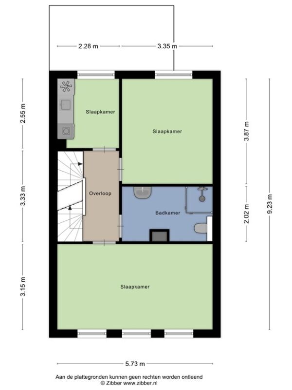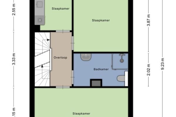 Overloop met toegang tot drie kamers en een badkamer met toilet, wastafel en douche. Twee kamers zijn in gebruik als slaapkamer, terwijl de derde kamer momenteel is ingericht als extra (tweede) keuken ideaal voor dubbele bewoning of als multifunctionele ruimte.