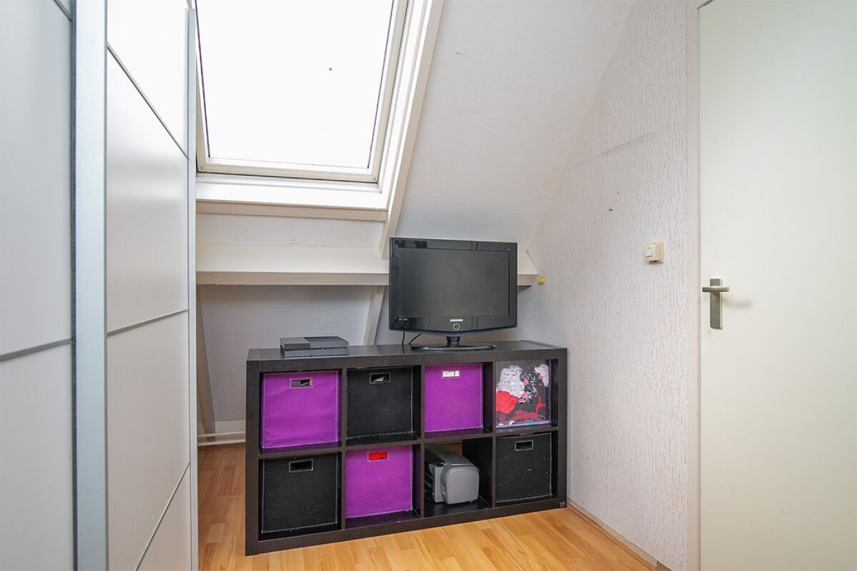 -Slaapkamer 1 (afm. ca. 4,55 x 2,81 meter) is gelegen aan de achterzijde van de woning met een vernieuwde Velux-dakvenster (2018). Er is ook nog een mogelijkheid om een bergruimte achter de knieschotten te maken;
