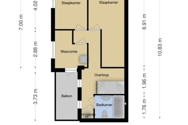 Badkamer met toilet, 2 slaapkamers, waskamer die eventueel ook als slaapkamer gebruikt zou kunnen worden met deur naar balkon.