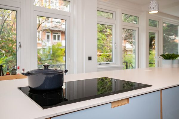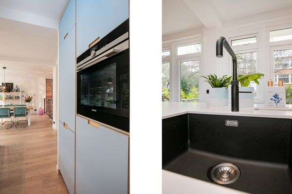 Begane grond: centrale entree met trappenhuis. Entreehal met zwevend toilet en garderoberuimte. De stalen deur geeft toegang tot het loft-achtige woongedeelte van circa 80m2. Aan de tuinzijde bevindt zich de luxe maatwerk keuken welke van alle gemakken is voorzien. Het ruime kookeiland is voorzien van een Siemens 5-zone inductiekookplaat, vaatwasser, Quooker Pro en ladeverlichting. De lades aan beide zijden bieden ruim voldoende opbergmogelijkheden. De ingebouwde kastenwand herbergt o.a. een ruime koelkast, vrieskast met lades en een Siemens combi stoom-heteluchtoven. De designtrap in de vide geeft toegang tot het souterrain. De deuren aan de achterzijde geven toegang tot de ongekend ruime tuin.
