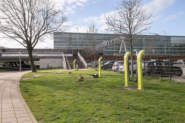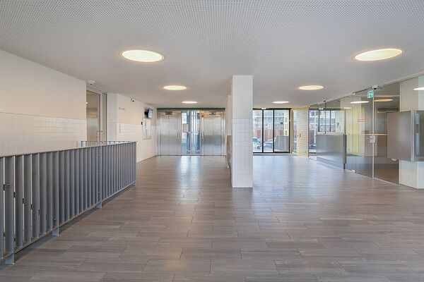 ‘De Studio’ heeft een mooie, lichte gezamenlijke entree met een videofoon en de brievenbussen. Zet je fiets in de stalling en ga vervolgens met de lift naar de 9e verdieping. Geniet van de vibe in en rond het gebouw, met bewoners uit alle werelddelen. Voor het gebouw ligt een fraai plantsoen, wat een transformatie onderstaat tot een fantastische tuin-, sport- speel- en ontmoetingsplek voor iedereen die in de buurt woont en werkt.