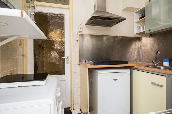 Het appartement beschikt op het oosten over een kleine groen omheinde tuin, in zijn geheel voorzien van tegels, waar je in de zomer kunt genieten van de zon en ´s winters eventueel je fiets kan zetten.