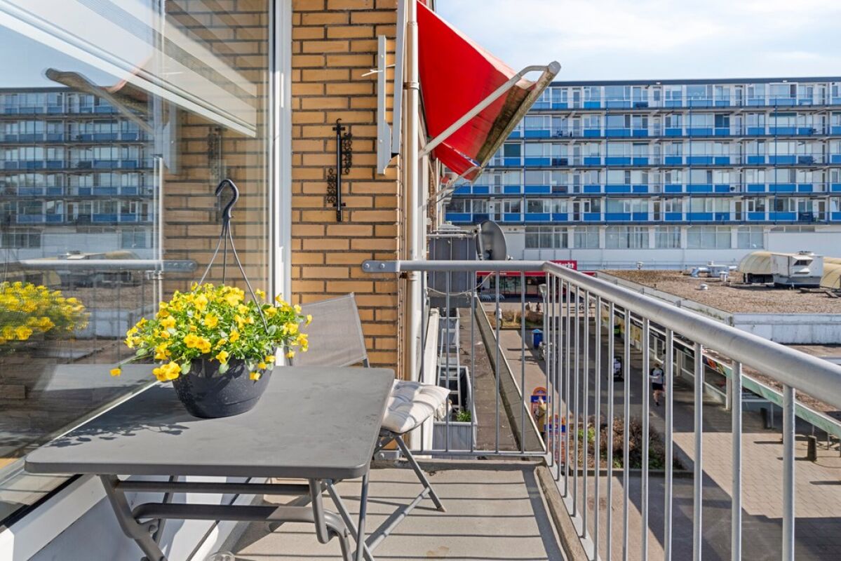 Vanuit de woonkamer is er toegang tot een gezellig balkon, perfect om even buiten te ontspannen.