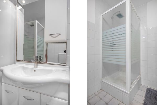 De in lichte kleuren uitgevoerde badkamer is ingedeeld met een douche, toilet en een groot wastafelmeubel. Aan de overzijde van de hal zijn de meterkast, wasruimte en de toiletruimte met fonteintje, uitgevoerd in dezelfde stijl. Onmisbaar is de inpandige berging, die je ook kunt gebruiken als werkkamer/hobbyruimte.