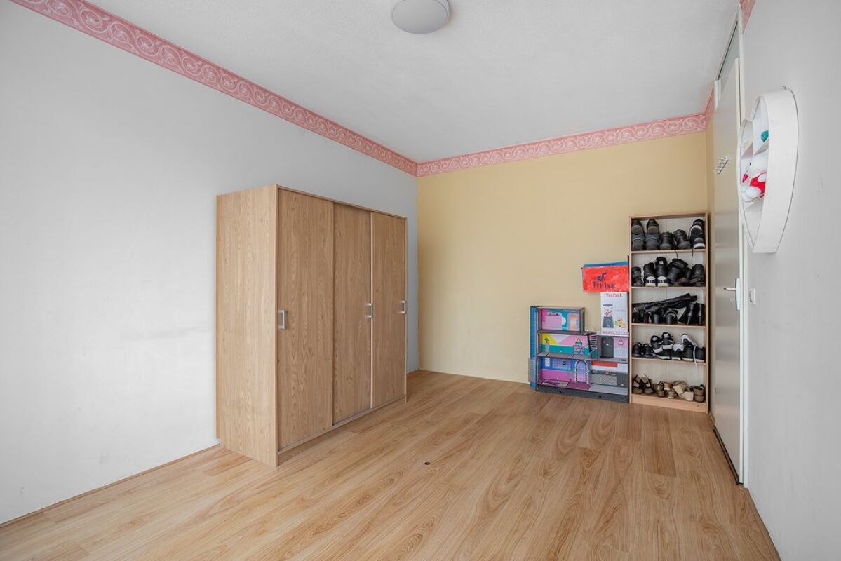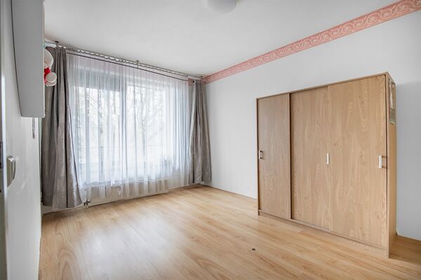 Het appartement heeft maar liefst drie slaapkamers, waardoor dit een perfecte plek is voor een gezin en om vanuit huis te werken. Een van de slaapkamers grenst aan de straat en de twee andere slaapkamers aan de rustige galerij. Op de slaapkamers ligt een nette laminaatvloer en de grote ramen zorgen voor veel lichtinval.