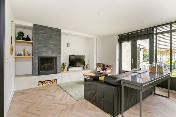 De woonkamer met halfopen keuken biedt een fraai uitzicht op de goed onderhouden tuin. Door de aanbouw aan de zijkant is de woonkamer ruim 10 m2 vergroot en de grote raampartijen zorgen voor veel licht. De open haard is mooi strak en geeft naast de al bestaande vloerverwarming een behaaglijke warmte af. De moderne keuken geplaatst in 2015 bevat diverse inbouwapparatuur waaronder een 5 pits Bosch inductieplaat, Zanussi combi oven/magnetron, Zanussi Stoomoven, Wave plafondunit afzuigkap, Zanussi koel- vrieskast, en Miele vaatwasser. Vanuit de keuken is de aanpandige garage te betreden. Door de dubbele deuren komt u in de zonnige in 2015 aangelegde tuin van ca. 90 m2 met groot terras voorzien van elektrisch zonnescherm, open tuinhuis, speelveldje en tevens voorzien van tuinverlichting en wateraansluiting. De tuin is tevens voorzien van een aangebouwde stenen berging met elektra met eigen stroomgroep en er is een achterom.