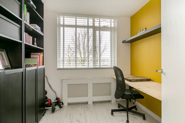 Met de open trap gaat u naar de in 2019 volledig gerenoveerde tweede etage. De overloop biedt toegang tot een ruime wasruimte van ca. 6 m2 met opstelplaats van de cv-ketel, wastafel en een dakraam. Tevens via de overloop te betreden zijn de twee riante slaapkamers van respectievelijk 12 m2 en 13 m2. De in 2019 geplaatste dakkapel en Velux dakramen zorgen voor voldoende licht en maken dit tot twee heerlijke kamers. Middels een vlizotrap op de overloop kunt u naar de vliering voor extra bergruimte.