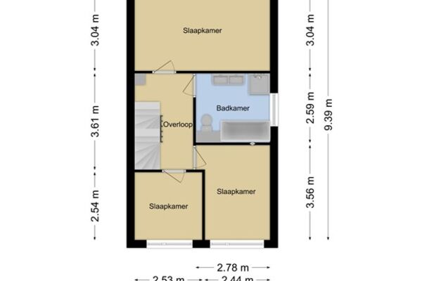 Via de gesloten trap gaat u naar de eerste etage. De overloop biedt toegang tot alle ruimtes en is voorzien van een open trap naar de tweede verdieping. De slaapkamer aan de achterzijde is ca. 15 m2 en de 2 slaapkamers aan de voorzijde zijn ca. 10 m2 en 6 m2. De ruime in 2015 aangelegde luxe badkamer van ca. 7 m2 is voorzien van een ligbad van het merk Villeroy & Boch, inloop douche, dubbele wastafel en toilet van Villeroy & Boch. De overloop en slaapkamers hebben een nette laminaatvloer en de badkamer is voorzien van plavuizen van Villeroy & Boch met vloerverwarming.