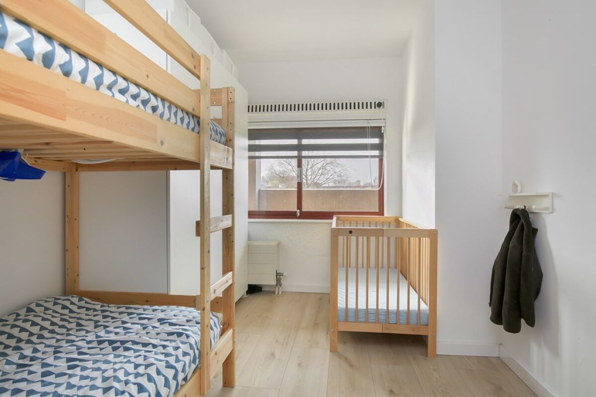 Aan de koele noordwestzijde zijn twee fijne slaapkamers. Aan de linkerzijde is de hoofdslaapkamer en de kamer is thans ingericht als kinderkamer. Verder heeft het appartement een inpandige berging met ruimte voor een grote kast, de wasmachine, vriezer en andere spullen.