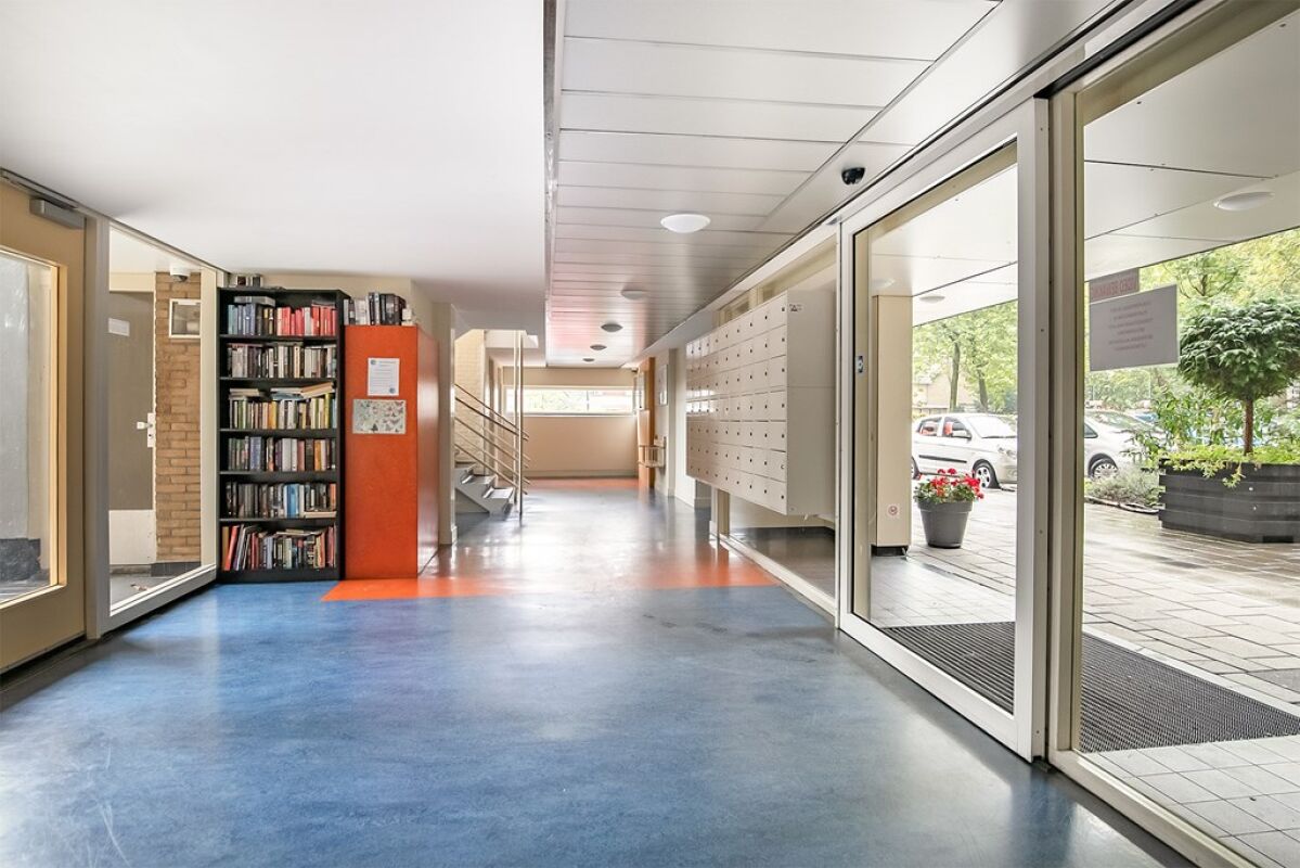 Parterre: gezamenlijke entree, brievenbussen- en bellentableau, lift, trappenhuis en toegang tot berging.