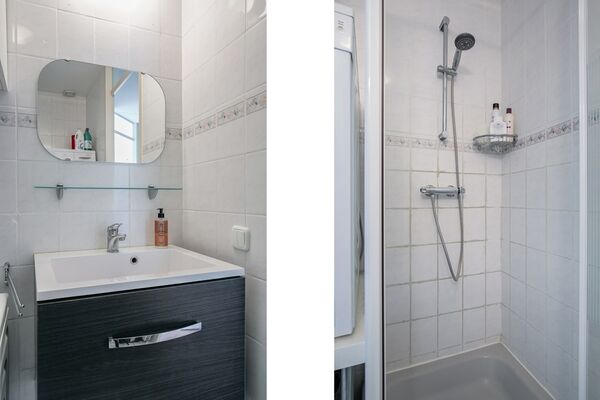 Er is een separate toiletruimte met fonteintje. Het appartement is voorzien van een laminaatvloer m.u.v. het sanitair en de keuken, deze zijn voorzien van een tegelvoer.