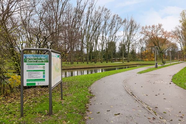 Groenvoorziening: de woning ligt aan de rand van het zuiderpark, in het midden ligt een grote plas, ook zijn er volkstuinen en de openbare "groene oase".