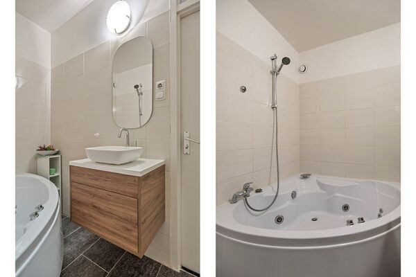 Bij binnenkomst treft u een ruime hal met voldoende plek voor uw jassen en schoenen. Vanuit deze hal bereikt u een lichte slaapkamer perfect als master bedroom en een badkamer met een ontspannende jacuzzi. Tevens vindt u hier een handig gasttoilet en een aparte berging, ideaal voor uw voorraad of huishoudelijke apparatuur.