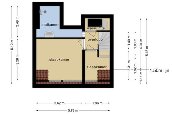 Wat een ruimte heeft deze bovenwoning, want op de derde verdieping zijn nog twee slaapkamers, de badkamer en een wasruimte. Beide slaapkamers zijn aan de voorzijde en heel licht dankzij de ramen in de dakkapel.