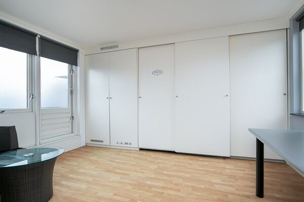 2e verdieping: ruime 4e studio-/slaapkamer met toegang tot het dakterras. Hier bevindt zich ook de opstelling CV en de wasmachine opstelling.