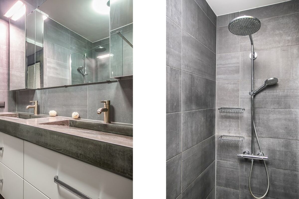 De badkamer is bij de vernieuwing ook vergroot en heeft een moderne, luxe uitstraling. Dat geldt ook voor de aparte toiletruimte.