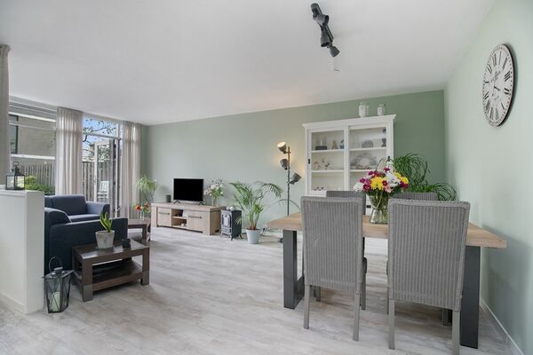 - Woonkamer met aan de achterkant een nieuw houten kozijn met HR++ glas.