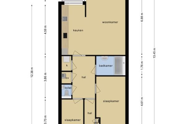 - Twee slaapkamers aan de voorkant met kunststoframen met HR++ isolatieglas en raamhoren.