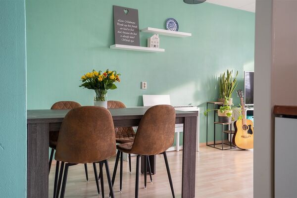 Woonverdieping: entree, hal met meterkast (5- groepen en een aardlekschakelaar), garderoberuimte en toegang tot de lichte woonkamer met openslaande deuren naar het ruime terras waar u tot in de avond kunt genieten van de zon. Het balkon is voorzien van een grote kast, te gebruiken als berging. Open keuken in een handige hoekopstelling voorzien van diverse inbouwapparatuur o.a. een 4-pits gaskookplaat, recirculatiekap, combi oven/magnetron en vaatwasser. Boven en onder keukenkasten voor extra bergruimte. Aan de voorzijde een ruime slaapkamer. De grote ramen zorgen voor een extra lichte kamer. Tussenliggende moderne badkamer met een bad met regendouche, wastafelmeubel en een opstelplaats voor een wasmachine. Vanuit de centrale hal zijn zowel een bergkast met een opstelplaats voor een cv-ketel (geplaatst in juni 2020) als een separate voorraadkast en nette toiletruimte met een fonteintje te bereiken. Toilet en badkamer zijn nieuw gebouwd in juni 2019. De woning is geheel voorzien van een mooie lichte laminaatvloer.