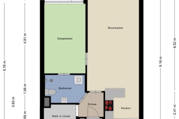 De badkamer, volledig gerenoveerd in 2023, heeft een moderne uitstraling met strak tegelwerk en biedt alles wat je nodig hebt: een toilet, wastafelmeubel, ruime inloopdouche en aansluiting voor een wasmachine. Tevens bevindt zich hier een elektrische boiler (Inventum) voor warm water. De praktische inpandige berging naast de entree dient momenteel als luxe inloopkast en biedt veel extra opbergruimte.