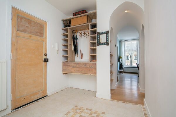 Op de begane grond kom je binnen in de ruime gezamenlijke hal met meterkast gevolgd door een gewelfde trap naar de 1e verdieping. Op de overloop is de originele granito terazzovloeren nog aanwezig.