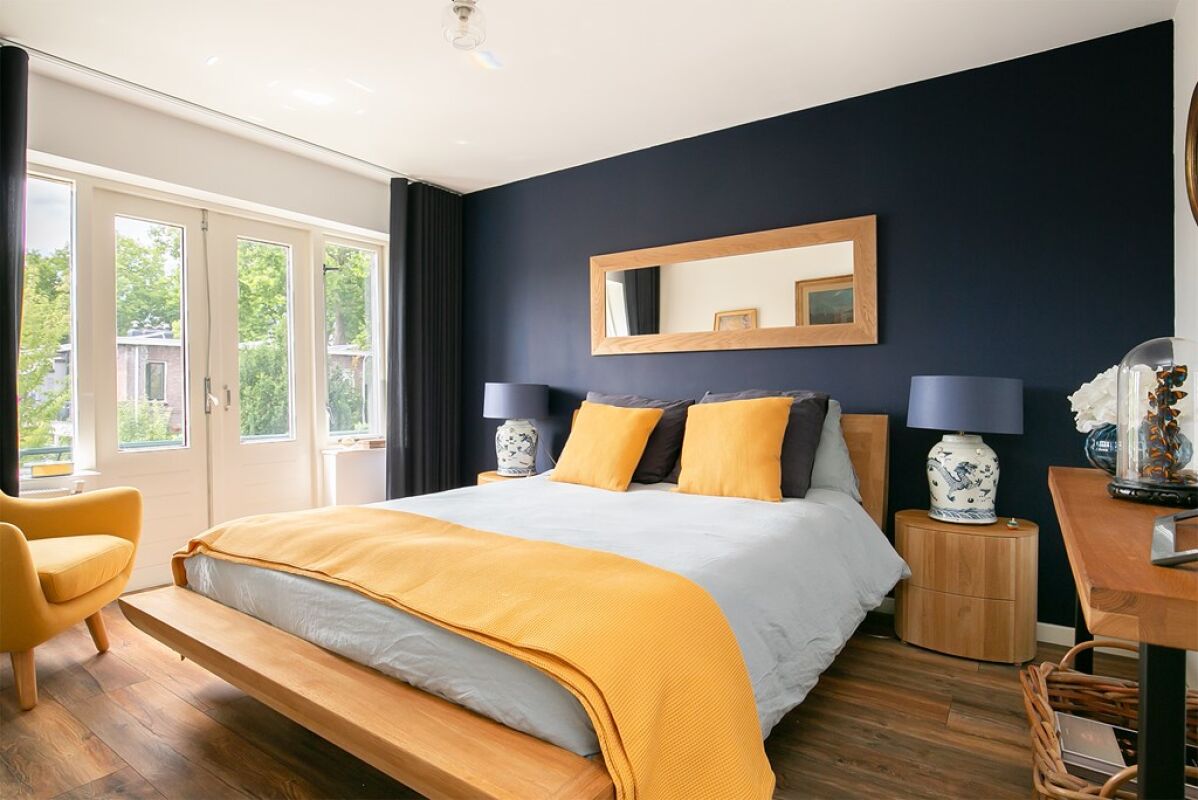Eerste verdieping: overloop. Royale slaapkamer aan de voorzijde van afm. (ca. 4,04 x 3,05 m) met toegang tot het balkon, een grote slaapkamer aan de achterzijde van afm. (ca. 3,51 x 3,05 m) en een kleine kamer aan de voorzijde afm. (ca. 2,77 x 1,73 m) met een grote kastenwand. Luxe geheel betegelde badkamer afm. (ca. 2,08 x 1,73 m) met ligbad, vloerverwarming, regendouche, wastafelmeubel en een radiator.