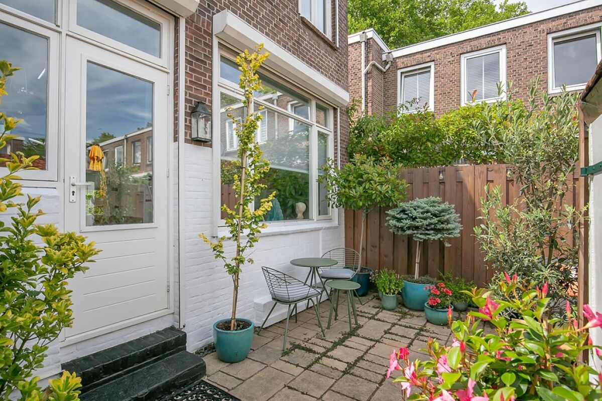 Deze woning beschikt over een heel leuk en privaat voortuin en achtertuin welke via naast de woning gelegen brandgang is te bereiken.