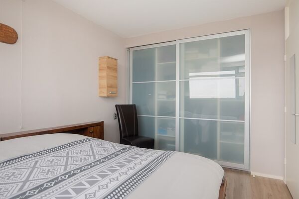 Het appartement heeft twee slaapkamers, waarvan een met een vaste kastenwand. Deze kamer is groot genoeg om als tweepersoonskamer in te richten en de tweede kamer is een prima eenpersoonskamer, werkkamer of kleedkamer.