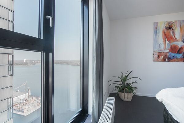 From the living room and bedrooms you can enjoy the beautiful view over the water and the dynamic city center of Almere. On clear days you can look across the IJmeer and Markermeer to Amsterdam and Marken.