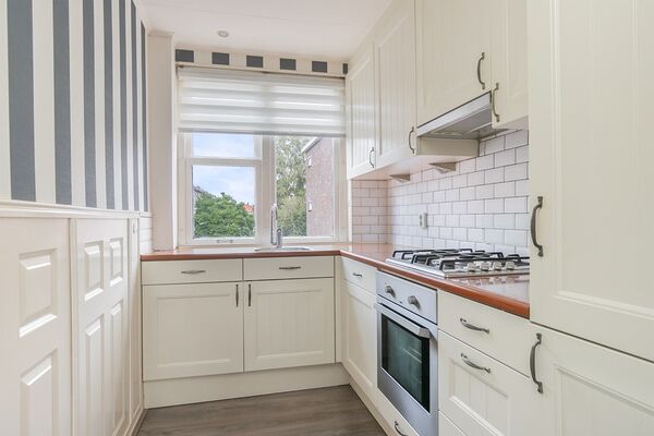 - Separate keukenruimte met keurig keukenblok in hoekopstelling voorzien van koelkast, vriezer, gaskookplaat oven, afzuigkap en vaatwasser. Ook de CV-ketel is netjes weggewerkt in een van de keukenkastjes.