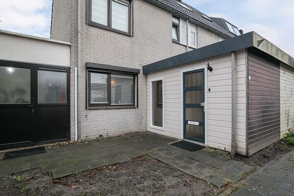 De achtertuin biedt veel privacy, is op het zuidwesten gelegen en heeft een oppervlakte van ca. 100m2. De tuin is grotendeels betegeld en voorzien van een vrijstaande houten berging. De tuin is via de woonkamer/eetkamer of via het zijpad (gelegen op eigen grond) van de woning te betreden. Vanaf ongeveer 12.30u tot laat in de vooravond kunt u genieten van de zon. De totale oppervlakte van de tuin (voor/zij/achter) is ca. 185m2.