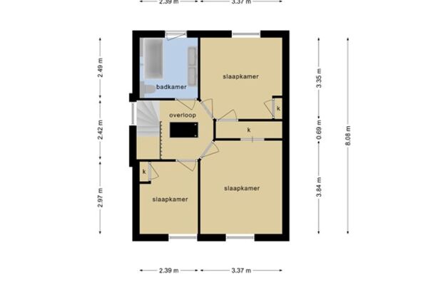Dan het huis zelf natuurlijk. Voor de verandering beginnen we boven. Ik ga er namelijk vanuit dat je de hele tekst gaat lezen omdat je alles wilt weten over je nieuwe (t)huis voordat je komt bezichtigen. En aan het eind heb ik nog een uitsmijter die je wilt lezen, dat weet ik zeker.