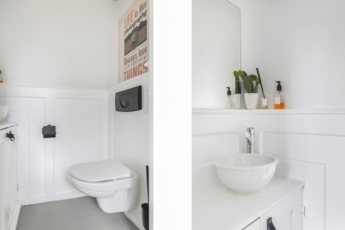 Achter de keuken vind je vervolgens nog het ruim toilet, een handige bijkeuken met wasmachine / droger opstelling, Cv-ketel en ruimte voor bijvoorbeeld je stofzuiger, kapstok, schoenen, tassen. Bedenk het maar en het past.