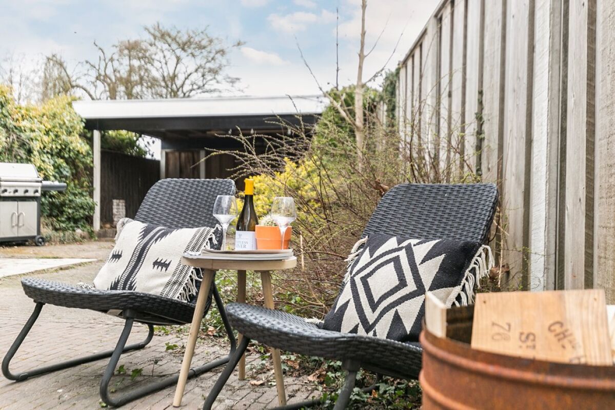 En dan de tuin, wat zal ik zeggen over de tuin. Retro? Ruimtelijk? Als je goed kijkt zie je dat je je loungeset heerlijk kunt zetten onder de overkapping (je auto kan er ook staan by the way) en je verder met een beetje liefde je er een prachtige tuin van kan maken, de diepte is er. Maar liefst 15 meter. En omdat de tuin gelegen is op het Noorden heb je de hele dag zon op verschillende plekken.