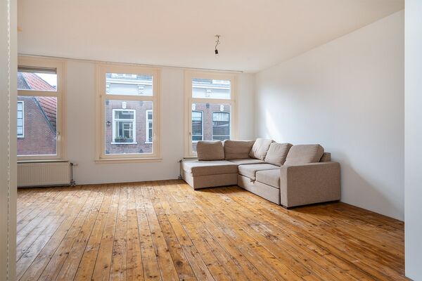 Via the joint staircase you reach the front door on the third floor and you immediately end up in the middle of the bright and attractive house. At the front of the apartment is the spacious living room with the large windows and a view of the (quiet) street side. At the rear is the master bedroom, the bathroom with shower and separate bath & toilet, and a washing machine room.