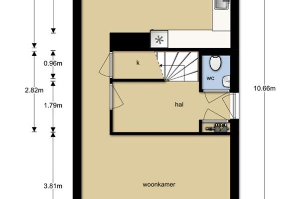 Begane grond met entree, ruime hal met garderobe, luxe betegeld toilet, meterkast en trapopgang. Grote woonkamer ca. 5.10 x 3.80m met grote raampartij. Open woonkeuken van ca. 5.10 x 3.40m met veel lichtinval vanuit de tuin, openslaande deuren en luxe keukeninrichting met hoogglans witte inbouwkasten, verder voorzien van een gas op glasfornuis, afzuigschouw, combi-oven, koelkast, vriezer, Quooker kraan en vaatwasmachine.