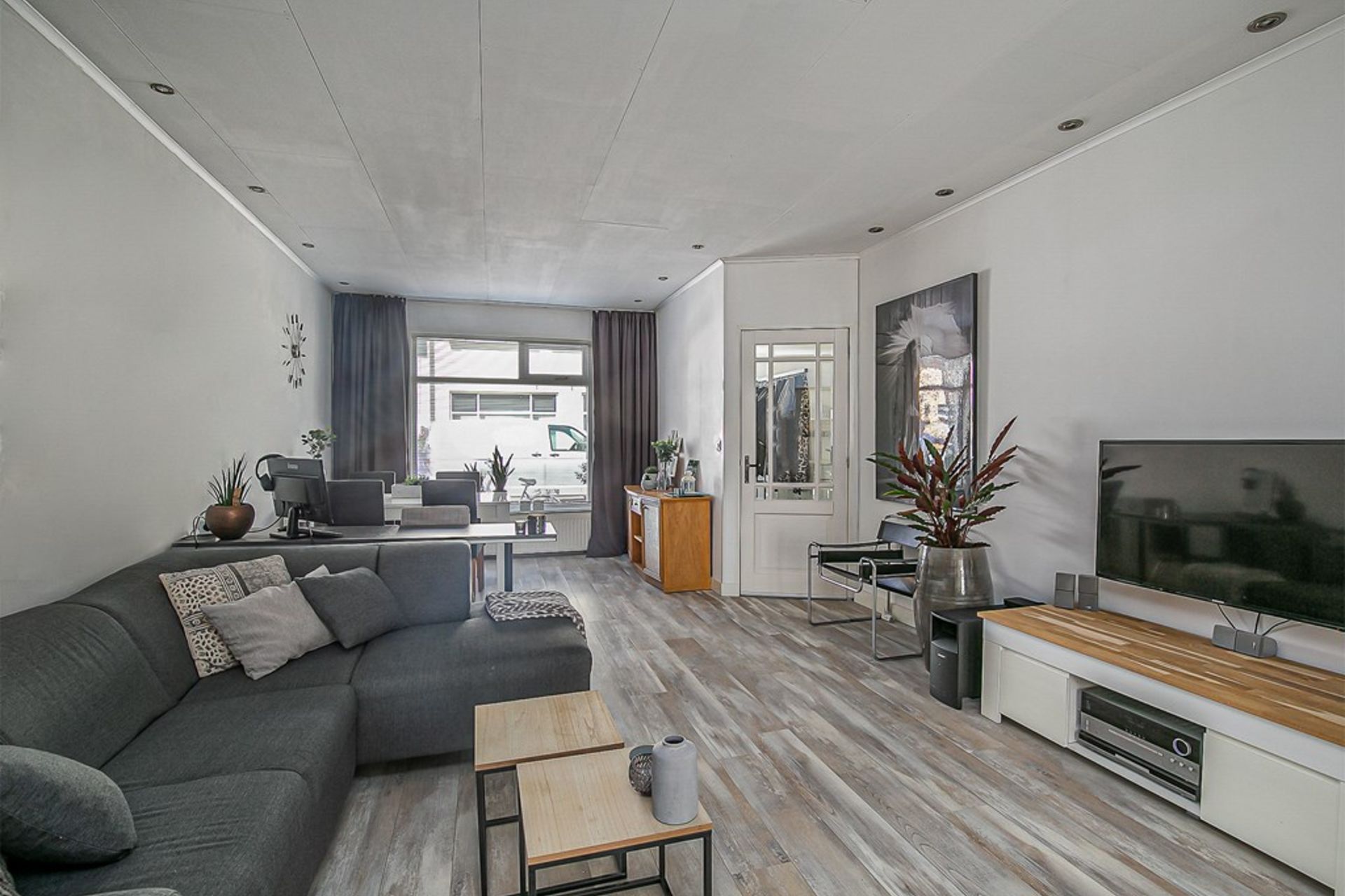 Entree, gang met natuurstenen vloer. Royale, lichte woonkamer voorzien van gestucte muren en een laminaatvloer. Vanuit de woonkamer loopt u door naar de keuken. De keuken is voorzien van de volgende (inbouw)apparatuur: koelkast, vriezer, magnetron, oven, afzuigkap, 5-pits gasfornuis met wokbrander en vaatwasser. De schuifpui in de keuken geeft toegang tot de tuin (ca. 12 m2) met aangrenzende grote stenen berging. Via de berging is er toegang tot de gemeenschappelijke achterom. Moderne badkamer (2019) met toilet, wastafelmeubel, spiegel voorzien van licht, designradiator en inloopdouche. Vanuit de woonkamer een hardhouten spiltrap naar de 1e verdieping.