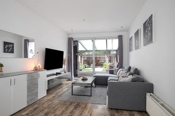 Bij binnenkomst in de woning ervaar je direct de warme en gezellige sfeer. De woonkamer is voorzien van grote ramen en een schuifpui waardoor er veel natuurlijk licht naar binnen valt. De open indeling zorgt voor een kleinere overgang naar de keuken, waardoor deze perfecte plek is om te ontspannen en te genieten van gezellige diners met familie en vrienden.
