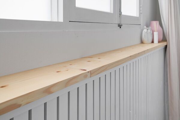 De woonkamer en keuken zijn, net als het balkon, aan de zuidkant gesitueerd. Hierdoor geniet je volop van de lichtinval en de zon. De woonkamer is optimaal ingedeeld met een ruime zithoek, grote eettafel en een op maat gemaakte kastenwand met bureau. De radiatoren zijn voorzien van een ombouw met een houten vensterbank waar je planten en accessoires kunt neerzetten. Ook hier zijn de wanden gestuct en valt je oog op de laminaatvloer.