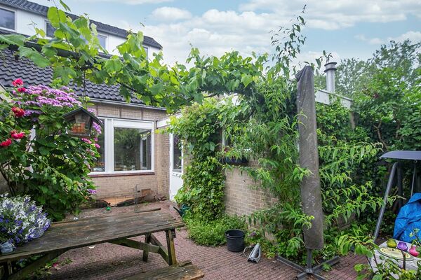 Achter het huis is een royale goed afgeschermde groene achtertuin met zowel zon als schaduwplekken en is vrij van achterburen. De tuin heeft twee terrassen en deze bieden de hele dag een plek in de zon of juist in de schaduw.