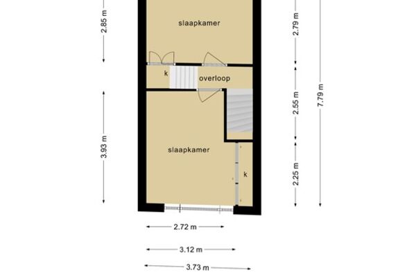 De overloop op de eerste verdieping biedt toegang tot 2 slaapkamers. Zowel de overloop als de slaapkamers zijn voorzien van een laminaatvloer. De grote slaapkamer bevindt zich aan de voorkant van de woning en is voorzien van een ruime inbouwkledingkast met barndeuren.