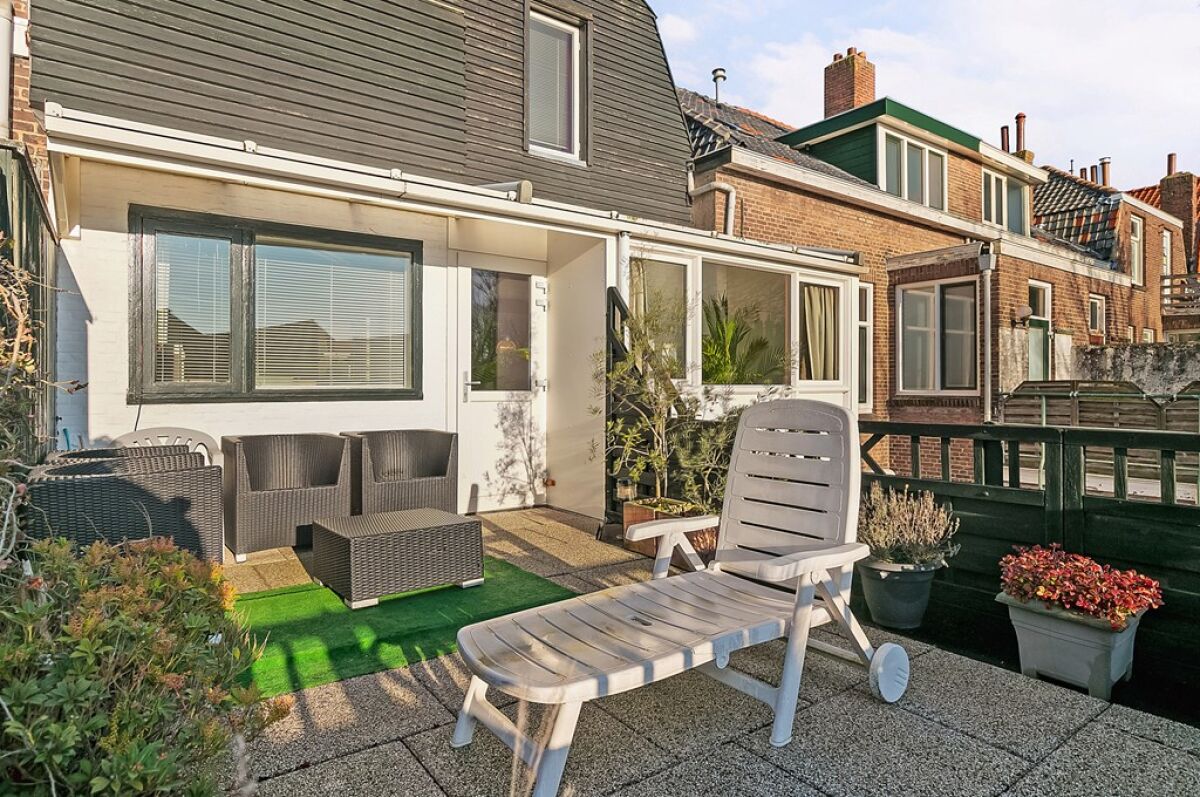 Ruim dakterras op het zuiden te betreden via de serre. Balkon aan de achter slaapkamer.