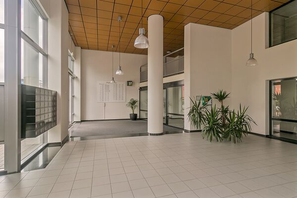 Representatieve, afgesloten entree met bellentableau met videofoon, brievenbussen, liften, trappenhuis, algemene fietsenruimte, containerruimte, toegang tot parkeergarage en winkelcentrum. De eigen huismeester van de toren is op werkdagen aanwezig in zijn eigen kantoor boven de centrale hal.