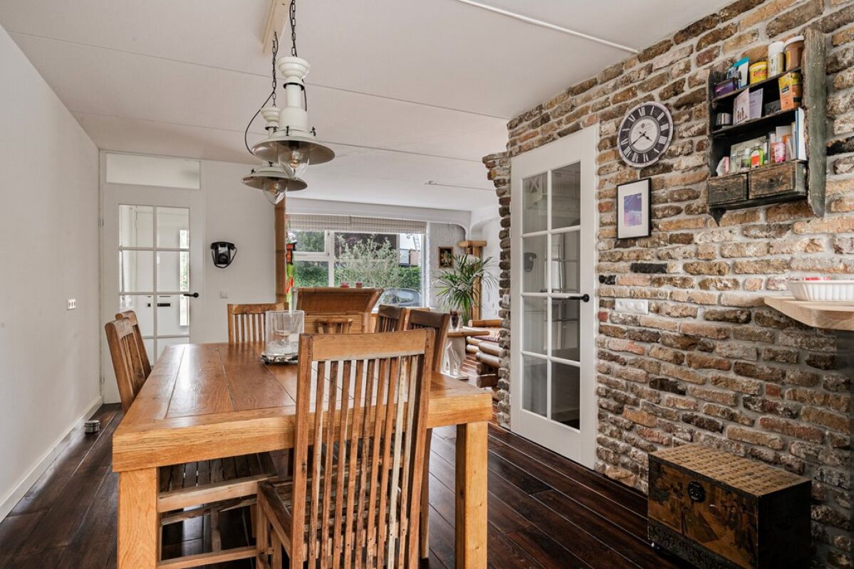 In het midden van de woonkamer is er een wand van authentieke Burgse waaltjes, een ware eyecatcher. Aan de voorzijde is de kamer ingericht met een zithoek en in het midden van de kamer is een eethoek gesitueerd. Een veelzijdige C-vormige woonkamer. De radiatoren hebben een lichte rotanombouw met handige massiefhouten vensterbank.
