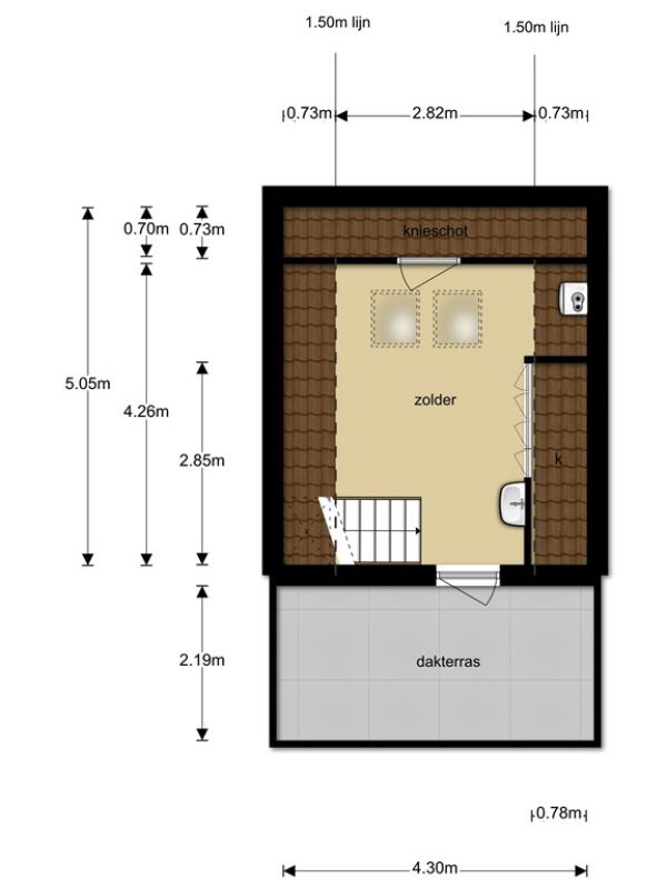 tweede etage/zolder: Via een vaste trap toegang tot de tweede etage, slaapkamer drie, deze is uitgevoerd met een grote zolderkamer met dakramen, wastafel en openslaande deur naar een zonnig en royaal dakterras aan de voorzijde.