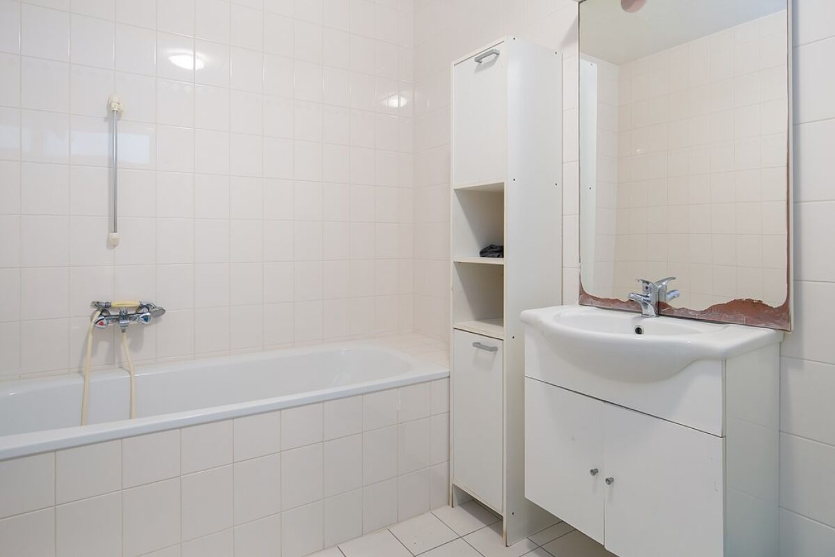 De volledig licht betegelde badkamer is voorzien van een 2e toilet, ligbad met handdouche, een aparte douche cabine en wastafel meubel.