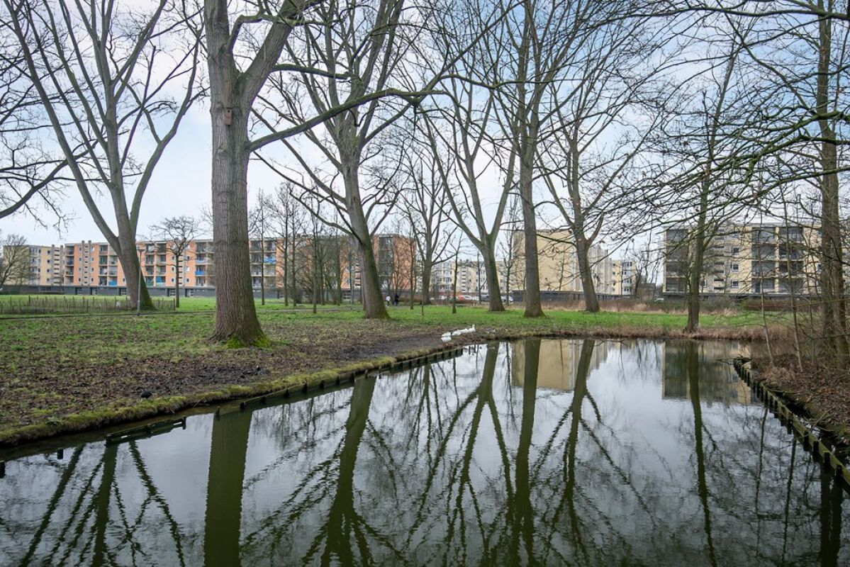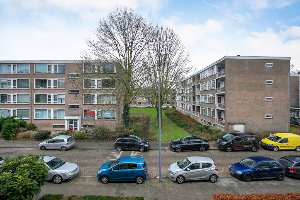 Het balkon aan de achterkant van het appartement kijkt uit op een groot grasveld, hierdoor is er veel privacy. Ook komt de zon op aan deze kant van de woning.