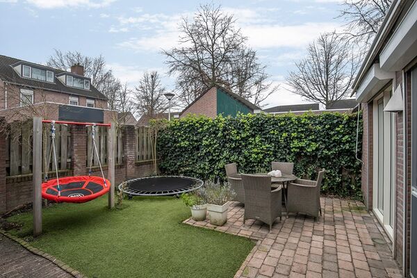 De achtertuin is gelegen op het zonnige zuiden. Dat is genieten vanaf de eerste zonnestraal in het voorjaar. Het is een prettige tuin om in te zonnen en een fijne speelplek met trampoline, rekstok en schommel voor de kinderen. De woning beschikt over een achteruitgang en stenen garage/carport. Deze is voorzien van een elektrische poort. Er is ook verlichting, stopcontacten en water aanwezig.