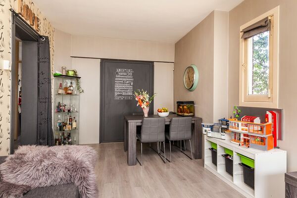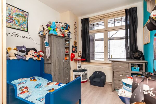 In de grote slaapkamer zijn nog de originele deuren te vinden die u kunt gebruiken om de woonkamer te vergroten. Met openslaande deuren bereik je het balkon. Het balkon is net zo breed als het huis en is recentelijk gerenoveerd (mei 2018). Op het balkon is een kast gemaakt voor het het plaatsen van de wasmachine en droger. U kunt de wasmachine en droger ook in de kleinere slaapkamer plaatsen waar een wateraansluiting te vinden is. In de hoek van de kleine kamer slaapkamer is een kleine inbouwkast met hierin de CV-ketel.